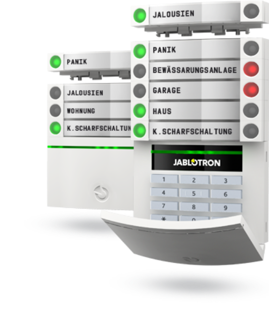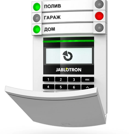 Управлять сигнализационной системой JABLOTRON 100+ настолько просто, что вы сможете делать это, даже если ваши руки будут заняты. Для этого вам достаточно будет нажать кнопку на выбранном сегменте. Каждая кнопка соответствует определенной части квартиры или какой-либо функции – например, регулировке освещения.