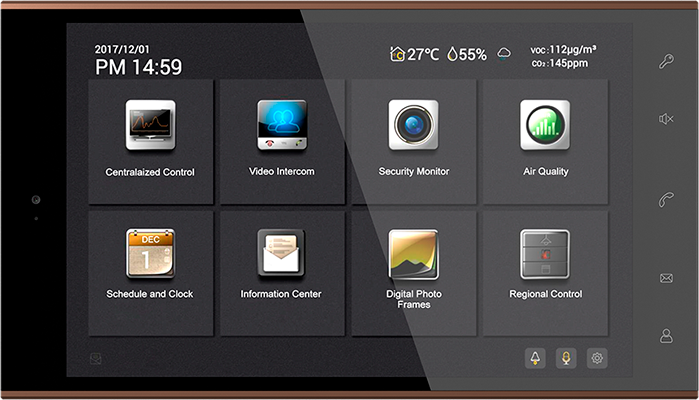 Многофункциональная панель управления с сенсорным экраном 7.1” с поддержкой видеоинтеркома.